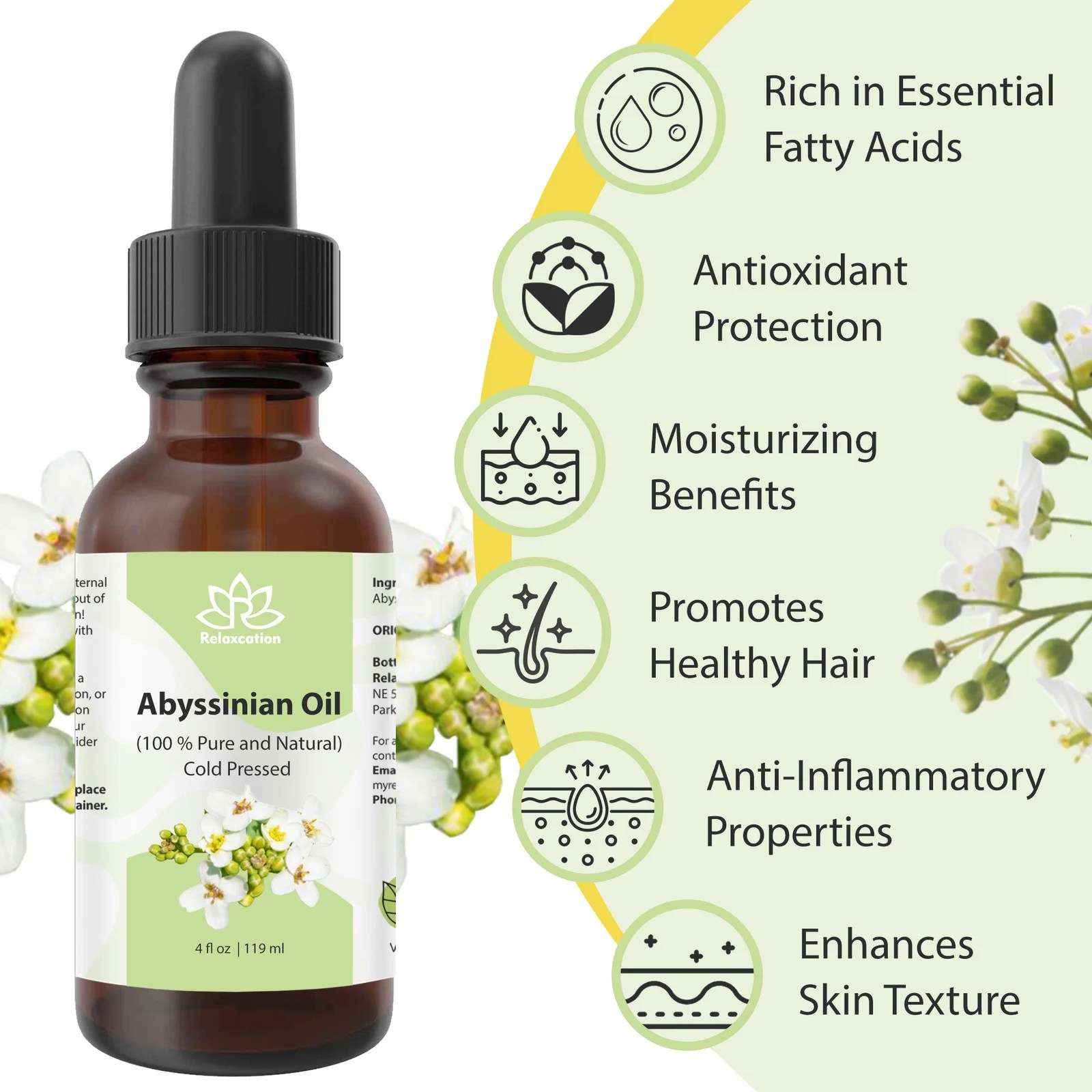 Abyssinian Oil is a light, nongreasy natural seed oil with a unique molecular structure not found in any other natural oils.