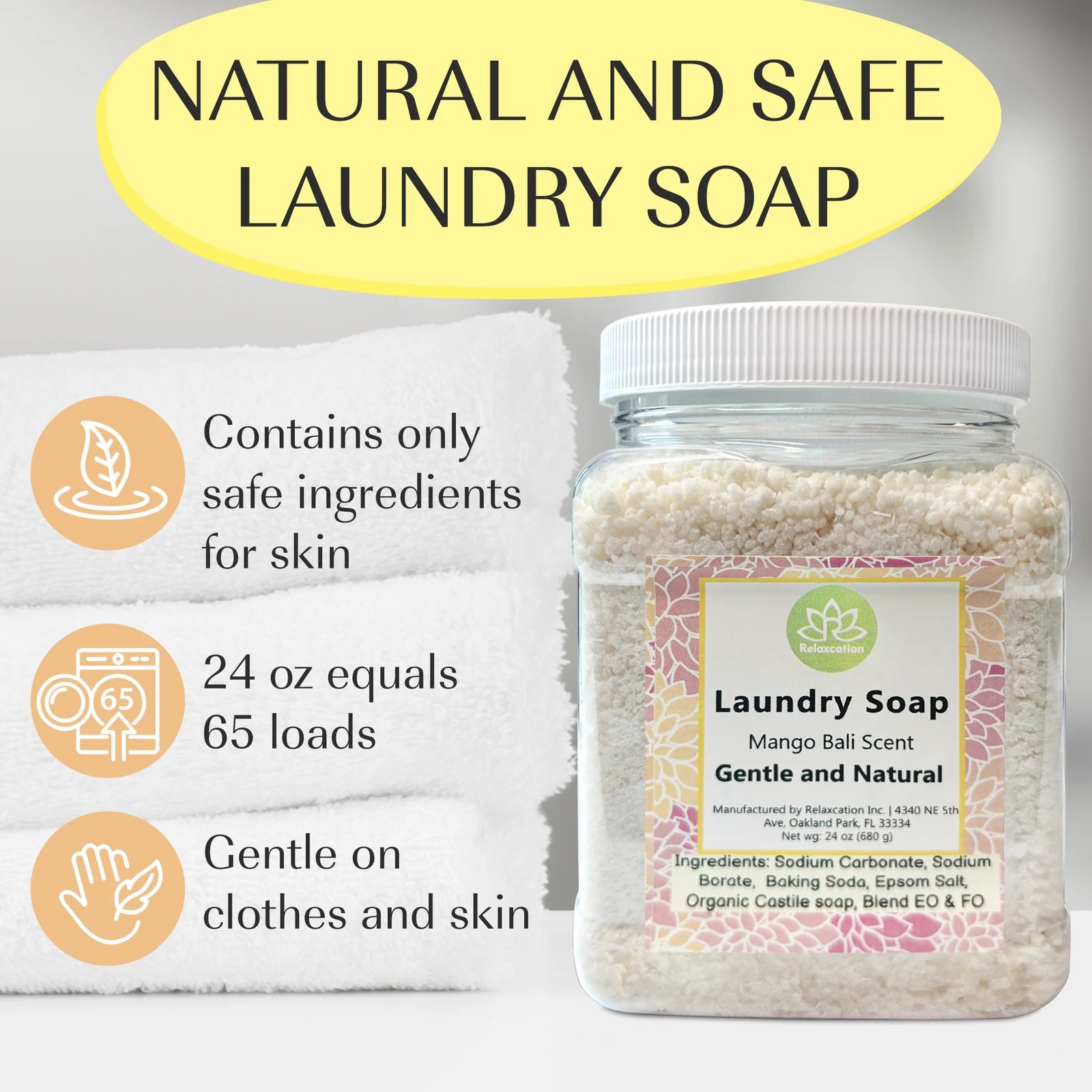 Cold Processed Soap: Our laundry soap is enriched with cold-processed soap, carefully crafted to be gentle on fabrics while effectively cleansing and removing grime.