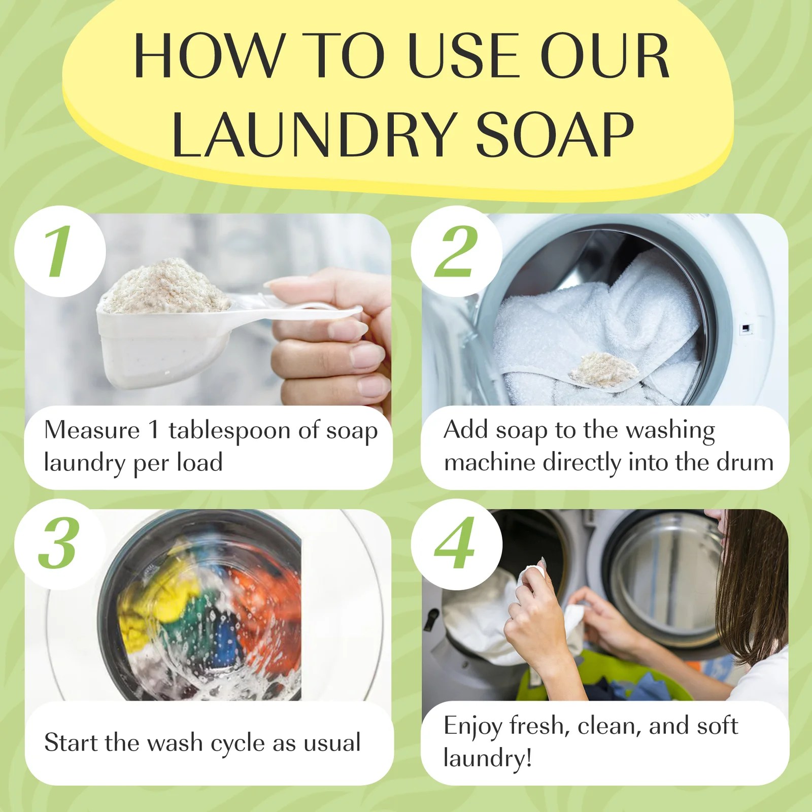 Experience the power of nature with our all-natural laundry soap. Treat your clothes, your skin, and the environment with the care they deserve. Order your eco-friendly laundry detergent today and transform your laundry routine into a natural and refreshing experience!